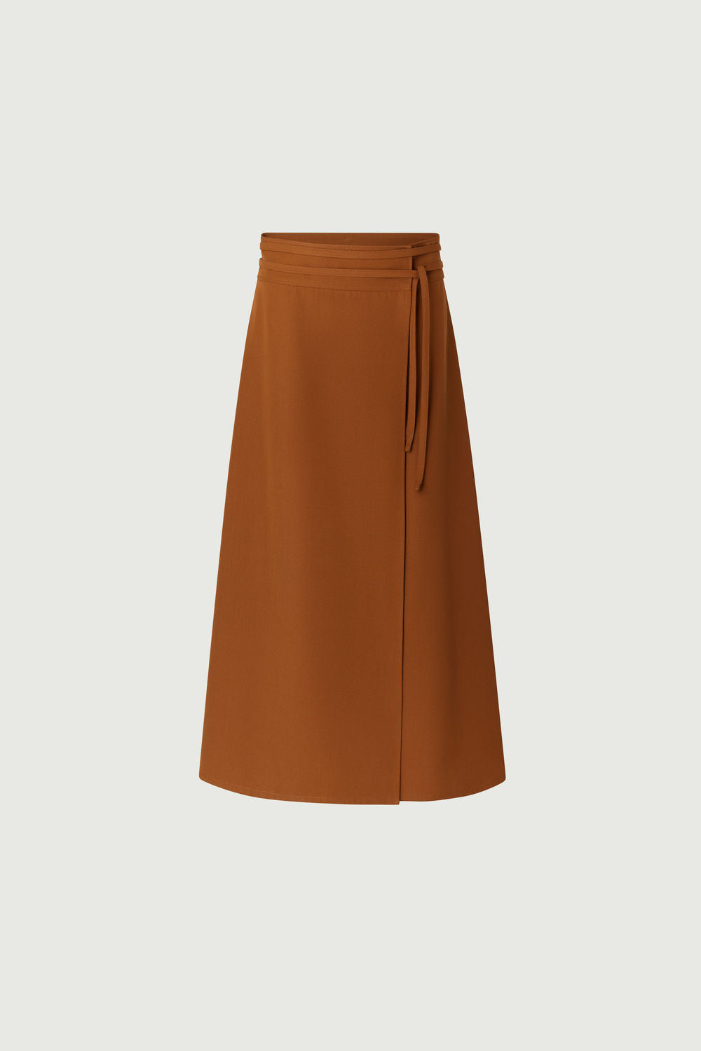 REINE is a wrap-around skirt with an A-line shape, offering a flattering silhouette with its high waist and mid-calf length. The wool gabardine ensures both comfort and refinement, making this skirt an ideal choice for adding a touch of sophistication to your seasonal outfits.
