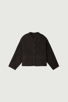 OLYMPE is a thick wool jacket with a short, beautifully suspended silhouette above the waist. It pairs just as well with tailored trousers as it does with relaxed jeans, offering versatility that will enhance all your outfits.